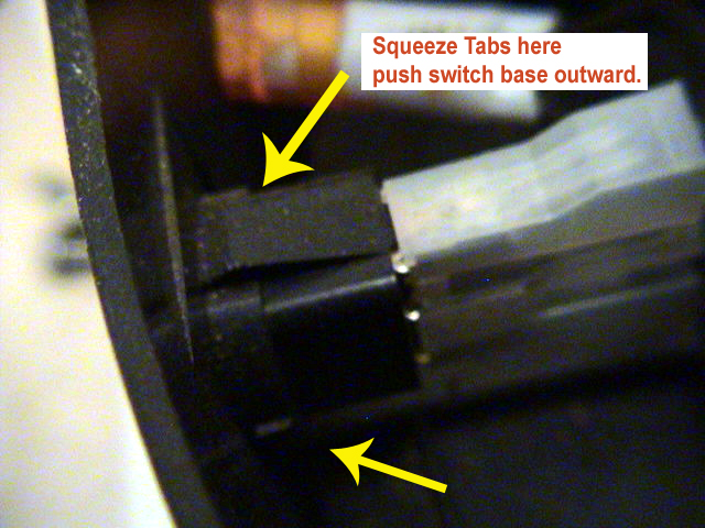 Next, to remove the old switch you will need to press on the retaining  tabs that hold the switch to the base of the unit.