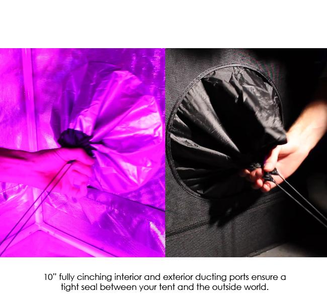 - BEST QUALITY – No plastic anywhere. Biggest zippers on the market. Diamond reflection technology. Double cinching ducting ports. Tool pouch. Bug resistant pre-filters. Sturdy flood pool. Attention to detail EVERYWHERE.