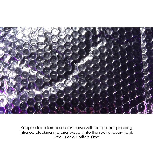 - SAFEST – Patent Pending infrared blocking roof keeps surface temperatures cool. Dense threading and tight seals help contain noise and odor, as well as form a sturdy flood pool that truly holds water.
